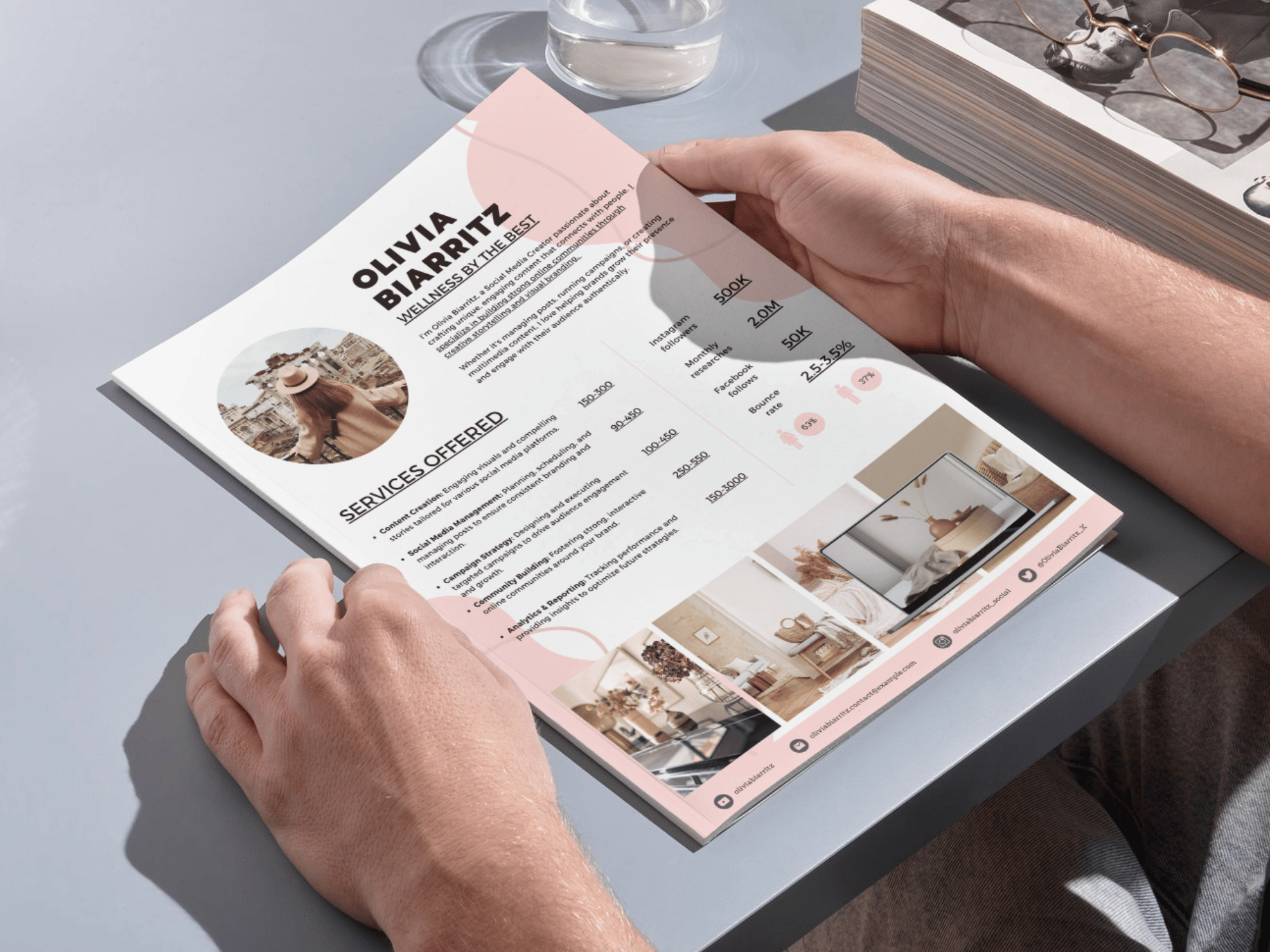 It's adaptable for various content creators, from social media influencers to brand ambassadors. Clean, professional layout supports quick customization.