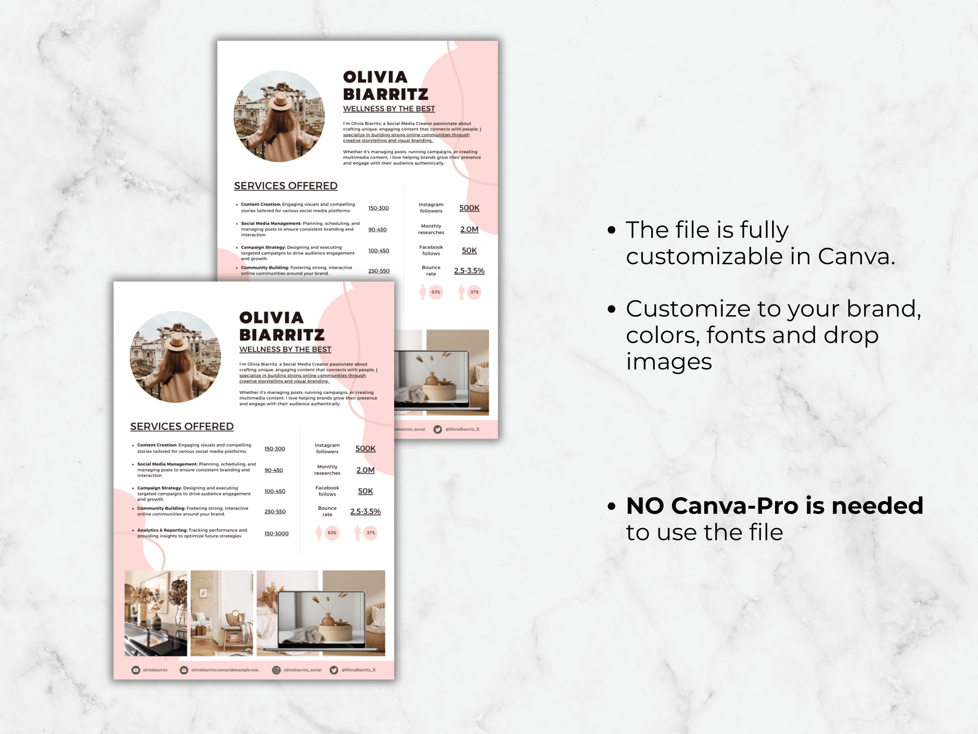 Save time with an easy-to-use template. Editing in Canva allows you to customize your rate card for each brand.