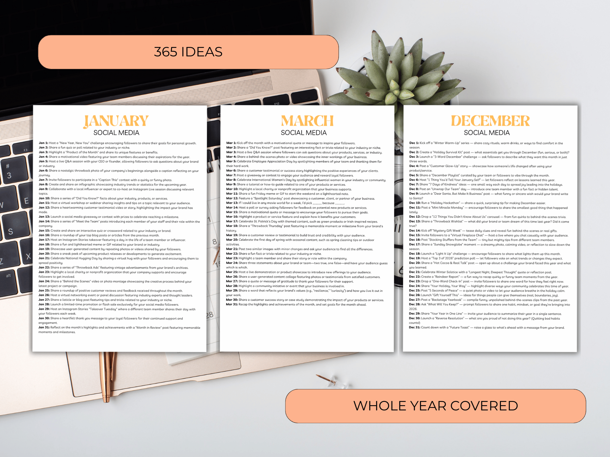 - Plan social media posts quickly with ready-to-use ideas for every day of the year