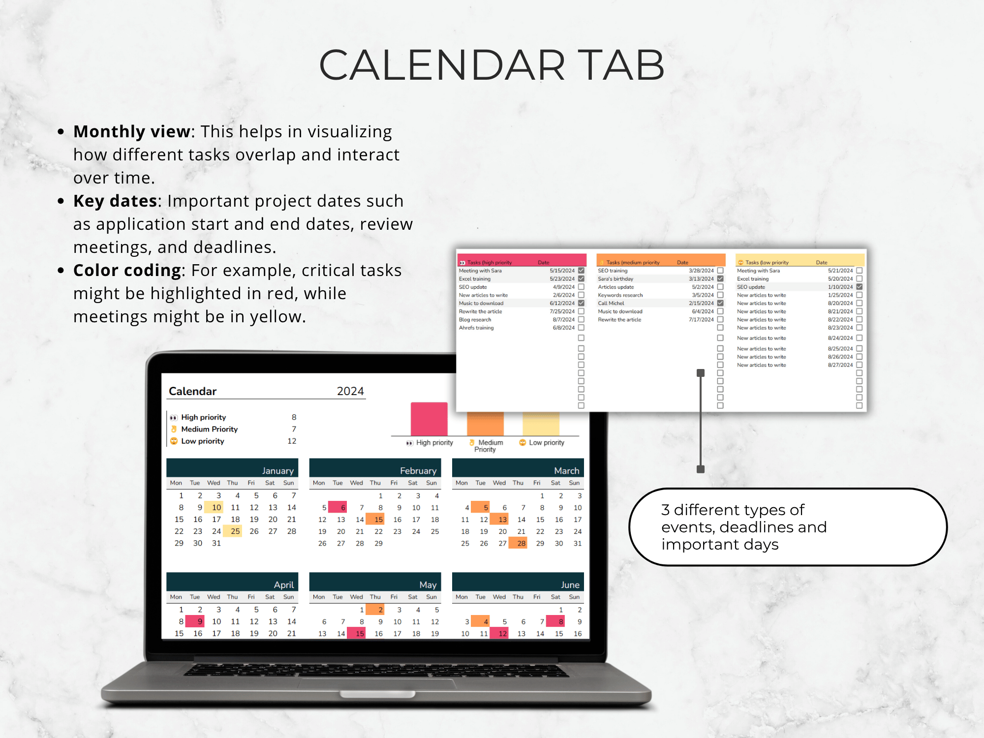 - Pre-built formulas that automatically calculate your progress and track key milestones;