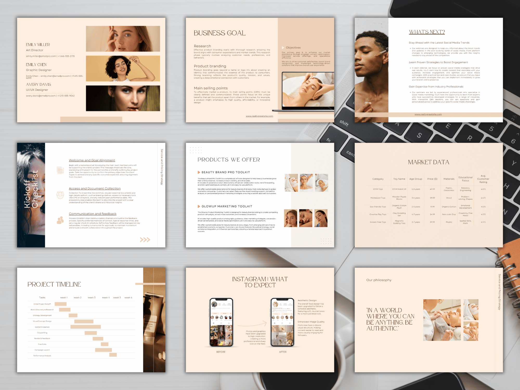 - After purchasing this template, you will receive 78 ready-to-edit pages, including: title pages, table of contents, team presentations, packages offered, package comparisons, additional services, bestsellers, company history, stages of cooperation, and much more. Check out the preview photos for more details.